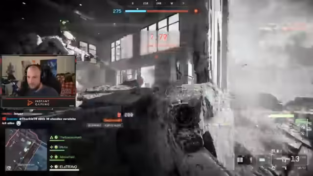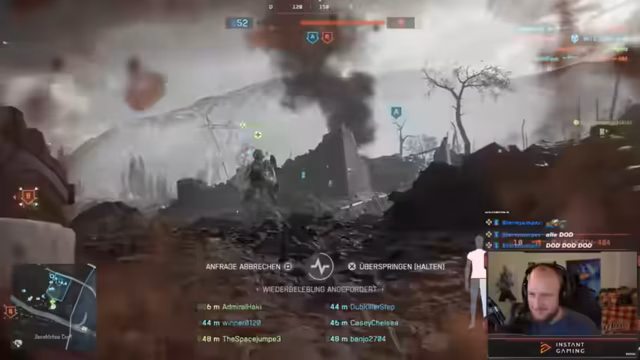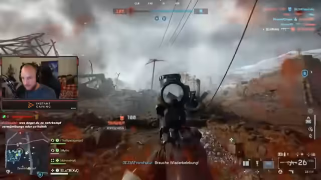 12:51:06Mitten im Spiel hängt sich Battlefield auf, was den Spieler sichtlich frustriert. Er muss das Spiel neu starten und hofft, dass es nicht erneut abstürzt, da er sein Team nicht im Stich lassen möchte. Während er auf den Neustart wartet, schlägt er vor, dass seine Teamkollegen weiterspielen sollen, damit er nebenbei etwas erledigen kann, wie eine Zigarette rauchen. Als er wieder im Spiel ist, wird eine neue Strategie für die nächste Runde besprochen: Direkt ganz links gehen, dreimal Versorger und einmal Soldat spawnen. Die Teamkollegen sollen direkt als Pionier spawnen, um feindliche Panzer auszuschalten, die als störend empfunden werden. Die Hoffnung ist, dass diese Taktik zu einem Sieg führt, nachdem die vorherige Runde aufgrund technischer Probleme und mangelndem Teamplay schwierig war.