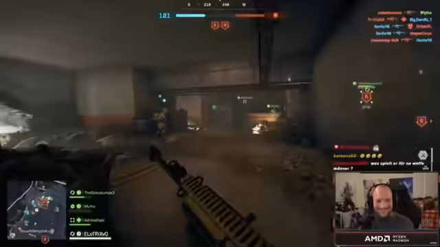 13:03:26Der Spieler äußert seine Begeisterung für Battlefield 6 und bezeichnet es als einen „richtigen Kracher-Shooter“ nach langer Zeit. Besonders der abwechselnde Modus aus Rush und Durchbruch macht ihm viel Spaß, und er wünscht sich, dass dieser dauerhaft im Spiel bleibt. Er spielt derzeit die SCAR und stellt fest, dass man mit jeder Waffe im Spiel erfolgreich sein kann. Während einer Runde, in der sein Team die Gegner überrollt, bemerkt er, dass er an einem „frechen Headglitch“ war und den Spawn der Gegner gut unter Kontrolle hatte. Er versucht, seine Waffen zu leveln, insbesondere die MP7, und hat bereits viele andere Waffen auf höhere Stufen gebracht. Trotzdem bleibt die MP5 für ihn die stärkste MP im Spiel, was er auch seine Teamkollegen fragt.