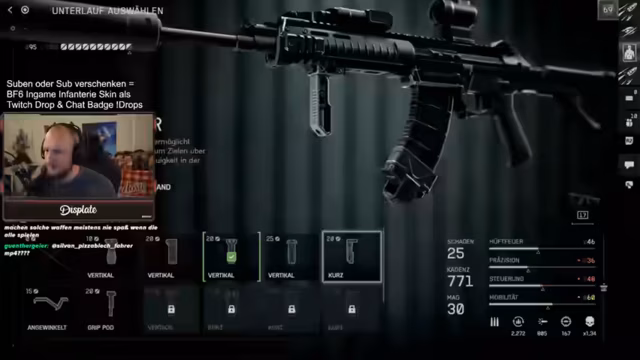 01:52:52Ein Spieler erklärt, dass die Herausforderungen für Waffen wie Karabiner nicht schwierig sind und hauptsächlich aus Schaden und Kills bestehen, die sich beim Spielen ergeben. Die QBZ wird erneut als Waffe hervorgehoben, die Spaß macht, eine gute Feuerrate und hohen Schaden bietet, besonders bei Kopftreffern. Die Spieler sind begeistert von der Möglichkeit, Gegner mit dieser Waffe „wegzuknacken“. Es wird auch über die Effektivität von Assists gesprochen, die als Kill zählen, wenn man mehr Schaden als der Teamkollege verursacht. Die MP5 wird als sehr empfehlenswert beschrieben, da sie guten Schaden auf Distanz macht und einen geringen Rückstoß hat. Die Diskussion über die besten Aufsätze für Waffen, wie z.B. Magazine, zeigt das Interesse an Optimierung und Effizienz im Spiel. Die Spieler interagieren auch mit dem Chat, fragen nach Snacks und teilen ihre Essenspläne, was eine lockere und unterhaltsame Atmosphäre schafft. Die Community-Interaktion ist ein wichtiger Bestandteil des Streams, wobei humorvolle Kommentare und persönliche Anekdoten ausgetauscht werden.