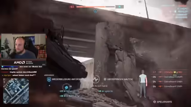 01:26:07Die Spieler diskutieren die Qualität der aktuellen Map, wobei Meinungen von „geisteskranker Battlefield-Clusterfuck“ bis zu „scheiße“ reichen. Ein Spieler bemerkt, dass er die Map häufiger spielen muss, um eine fundierte Bewertung abgeben zu können. Es wird auch über die Effektivität verschiedener Waffen gesprochen. Die Waffe, die gerade gespielt wird, wird als „echt gut“ beschrieben, wenn man ihren Rückstoß kontrolliert. Ein Spieler stellt fest, dass er mit seiner aktuellen Waffe anders spielen muss als mit einer MP wie der QBZ. Es gibt Frustration über ständige Angriffe aus unerwarteten Winkeln und die Notwendigkeit, Panzer zu zerstören. Die Stimmung schwankt zwischen Begeisterung für bestimmte Waffen und genervten Kommentaren über die Map oder die Gegner. Es wird betont, dass man im Spiel nicht stillstehen oder springen sollte, da dies oft zum Tod führt. Die QBZ wird als Waffe gelobt, die Spaß macht und eine gute Feuerrate sowie hohen Schaden bietet, besonders bei Kopftreffern.