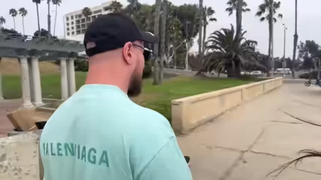02:44:18Nach dem spontanen Workout geht die Erkundung der berühmten Strandpromenade von Venice Beach weiter. Der Streamer zeigt die vielen Shops und den Skaterpark. Ein lautes Tier, möglicherweise ein Bär, sorgt für Aufsehen und Unterhaltung. Der Streamer nutzt die Gelegenheit, spontane Fotos von sich und seiner Begleiterin zu machen und interagiert intensiv mit dem Chat, der weitere Aktionen und Wetteinsätze vorschlägt.