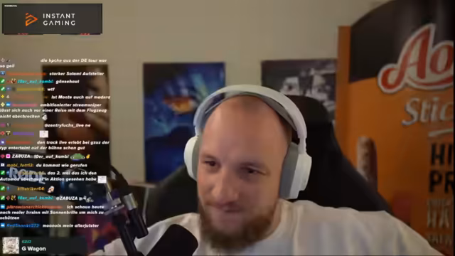 04:55:15Interaktive Momente mit dem Chat finden statt, wobei der Streamer humorvoll über seine Vorliebe für Salami-Sticks spricht und plant, sie auch weiterhin im Stream zu essen. Ein großes Gewinnsspiel wird angekündigt. In Zusammenarbeit mit dem Partner Instant Gaming wird ein 50-Euro-Guthaben verlost. Der Streamer demonstriert den Prozess des Code-Einlöschens, der nach der Bezahlung sofort erfolgt, und betont die Effizienz des Partners. Dies ist Teil seiner Strategie, die Community durch Giveaways zu unterstützen und sein Partner-Netzwerk zu bewerben.
