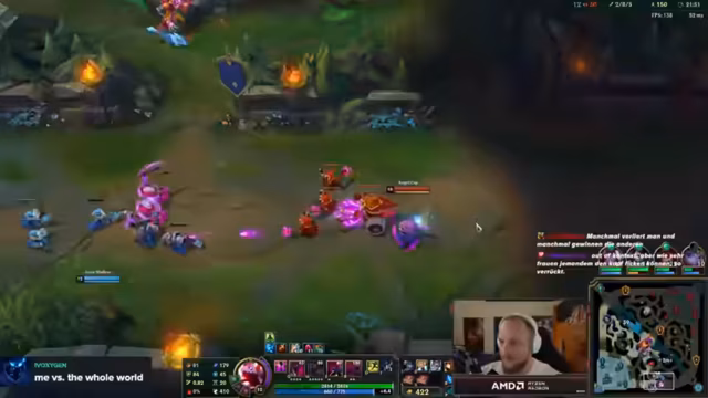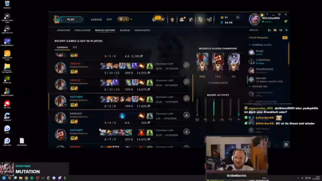 01:50:08In einem verlorenen Spiel wird das Verhalten der gegnerischen Irelia analysiert. Ihr Champion gilt als sehr stark im Late Game, da sie mit ihrem Q-Skill Schaden procct und ihre Fähigkeiten (E und Ult) zum Reset des Q nutzen kann. Diese Kombination macht sie zu einem extrem gefährlichen Split-Pusher. Der Streamer betont, dass er in solchen Spielen kein Geld mehr in das Spiel investieren werde, solange Riot nicht gegen solche Spieler vorgehe.