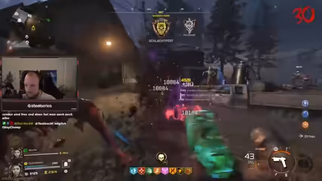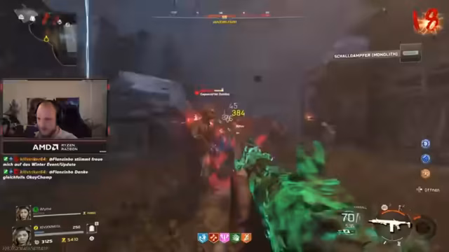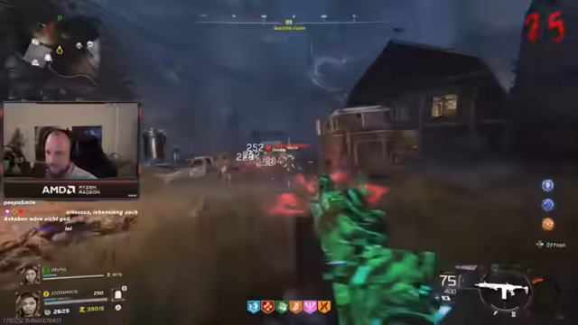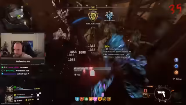 00:32:38Der Streamer freut sich über die Möglichkeit, in-game den Fortschritt, wie Headshots, nachzuschauen. Er hat bereits zweimal den Raygun-Kaugummi bekommen, den er als einen der besten einschätzt, neben dem 30k-Essenz-Kaugummi. Er hat die 1000 Headshots mit der M8 erreicht und muss nun Kryo-Kills und Punch-Kills erledigen, was er als einfach ansieht. Er kritisiert die Feuerwerk-Herausforderung als 'Kinderverarsche', da sie lange dauert und sich selten auslöst. Er erwähnt, dass er Ende des Monats eine Kill-Race-Challenge über AMD hat, bei der er zwei Stunden Multiplayer spielen muss, und der aktuelle Camo-Grind ihm dabei hilft, Waffen zu leveln. Er ist frustriert über die schlechte Optik der Prestige-Level und die ständigen Munitionsprobleme, da er so viele Kills macht. Er freut sich über gratis Perks durch das Gärtnern, was er als 'geile Mechanik' bezeichnet, da es Geld und Schrott spart und immer eine Überraschungspackung ist. Er plant, seine Ulti zweimal aufzuladen, um einen XXL-Train mit Insta-Kill zu machen. Er bemerkt, dass die Ulti-Kills nur langsam zählen und vermutet einen Bug oder eine sehr kurze Zählzeit. Er wechselt zu einer anderen Feldausrüstung, die die Rüstung repariert und Zombies anzieht, um die Ulti-Kills effizienter zu gestalten. Er ist frustriert über die geringe Anzahl an Kills, die für die Ulti gezählt werden, und vermutet, dass es sich um eine schlechte Programmierung oder eine sehr kurze Zählzeit handelt. Er und Mytho entscheiden sich, die Runde zu beenden, da die Shotgun nicht gut ist und sie eine neue Runde starten wollen.