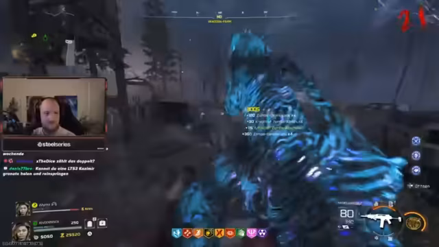 06:11:39Nach einem langen Stream unterbricht der Streamer das Zombies-Spiel für eine Pause, bei der er eine Semmel mit Nutella isst. Er wundert sich über die enorme Spielzeit von über sieben Stunden und ist überrascht, wie schnell die Zeit vergangen ist. Rück im Spiel konzentriert er sich auf das Erreichen von Runde 24, um die gepanzerten Zombies für eine Herausforderung zu töten. Bei den sprintenden Gegnern bemerkt er eine beschleunigende Lampe und wechselt seine Munitionsart auf Feuerwerk, um in schneller Folge Kills zu erzielen.