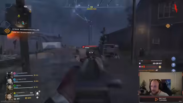 07:54:38Die lange Gaming-Session neigt sich dem Ende zu, und der Streamer verabschiedet sich von seinem Mitspieler. Er plant, am nächsten Tag wieder Reactions zu machen, da sein Cutter schon ungeduldig wird. Die Diskussion dreht sich um die Vorteile von YouTube gegenüber Twitch bezüglich passiver Einnahmen durch VOD-Werbung. Der Streamer testet ein neues Visier für seine SCAR und ist begeistert, wie 'clean' es ist, obwohl die Waffe ohne richtige Aufsätze noch stark verzieht. Er entdeckt, dass der alternative Feuermodus der Waffe ein Granatenwerfer ist, der auch zum Leveln genutzt werden kann. Trotz der Müdigkeit und der langen Spielzeit von über 8 Stunden fühlt sich der Streamer gut und möchte am liebsten weiterspielen. Es wird auch die sogenannte 'Mirage'-Waffe, das vorletzte Sturmgewehr, als 'geistkrank' im Zombie-Modus beschrieben, obwohl sie einen nervigen Input-Delay beim Schießen hat, sobald sie gepuncht ist.