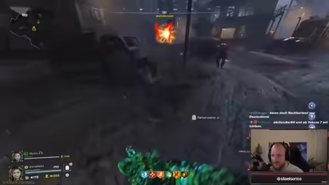 08:09:34Während der intensiven Zombie-Runde wird die Spieldynamik zwischen den Spielern deutlich. Der Streamer gibt seinem Mitspieler Mytho strategische Tipps und warnt ihn vor gefährlichen Situationen. Gleichzeitig stößt er auf mehrere Bugs, die das Gameplay beeinflussen. So wird ein Bug bei einer Waffe beschrieben, bei dem diese nach dem Punchen einen unnatürlichen Schussdelay und Nachlade-Probleme hat, was den Schusswiderstand erheblich mindert.