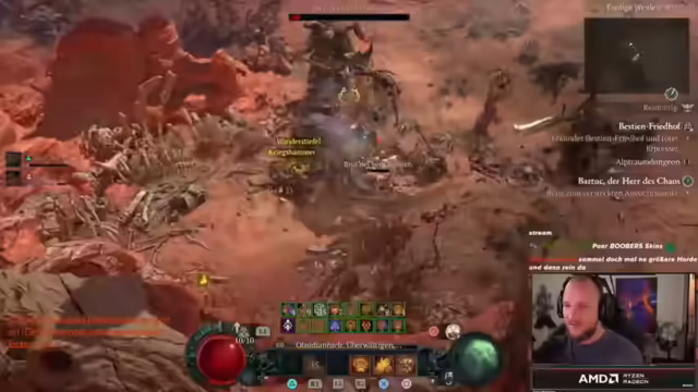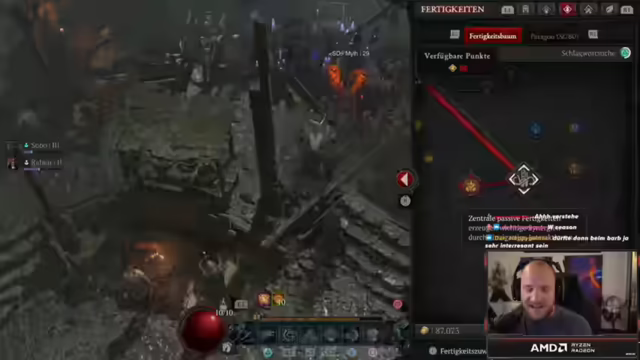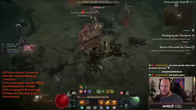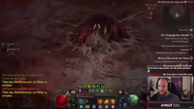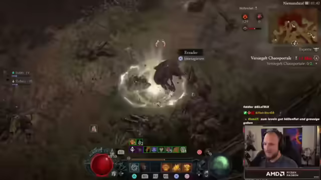 01:27:42Der Stream beginnt mit dem Thema Gesundheit, da über eine Mandelentzündung und die Notwendigkeit der Medikamenteneinnahme gesprochen wird. Trotz der Krankheit wird der Diablo IV Druide weitergespielt, wobei der Fokus auf dem Tornado-Build liegt. Es wird erwähnt, dass das frühe Finden eines legendären Aspekts das Umspecken lohnenswert macht und Chaos-Uniques das gesamte Build verändern können. Der Flüsterbaum-Aktivität wird nachgegangen, um zusätzliche EP zu erhalten. Es wird über Performance-Probleme auf Konsolen gesprochen, insbesondere bei Perfect Exile 2, selbst auf einer PS5 Pro, und die Notwendigkeit von Optimierungen bis zum Full-Release betont. Ein Placement für Battlefield wird erwähnt, und es wird angekündigt, dass diese Woche Samstag die Battlefield-Profi-Spiele um 20 Uhr stattfinden werden. Der Zerfetzen-Skill wird kurz ausprobiert, aber als unbefriedigend befunden und wieder verworfen, trotz des höheren Schadens.