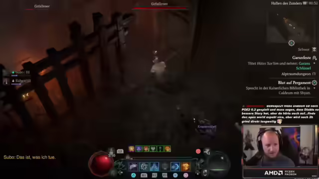 07:17:20Es wird festgestellt, dass die Fähigkeit noch gar nicht gefunden wurde, da sie erst extrahiert werden muss. Der Streamer spielt Diablo regelmäßig und meistens bis ein Charakter fertig ist. Dann wird es langweilig, wenn keine Upgrades mehr gefunden werden. Es wird die Damage-Anzeige aktiviert. Die Chaos-Vorteile seien echt krass. Es wird ein letzter Dungeon für heute gespielt. Die Season gönnt und der Loot wurde hochgeschraubt. Es wird gefragt, ob jemand Silent Hill gespielt hat. Der Streamer hat keine Ressourcenprobleme mehr und Diablo wird es noch 10 Jahre geben. Die passive vom Räuber, die Gegner anzeigt, ist geil. Das DLC lohnt sich für die Story. Die Medikamente lassen nach und der Hals fängt an weh zu tun. Es wird Stellarblade mit einem Update erwähnt. Es wird bedauert, dass man nicht auf T1 stellen kann, sondern die Grube machen muss, die es erst ab Level 60 gibt. Es werden defensive Sachen geskillt. Die Chaos-Portale und Albtraum-Siegel sind krass. Der Streamer hat die Zeit vergessen und ist in Diablo festgestockt. Die neue Season macht zu sehr Bock. Es wird alles weggecraftet und geschaut, ob was Geiles drin ist. Der Streamer ist immer noch krank und voll mit Medis. Es wird ein spontaner 7,5 Stunden Stream beendet. Level 51 wurde erreicht. Der Streamer ist gespannt, was auf T1 geht. Er bedankt sich für den geilen Stream, die Chat-Aktivität und den Support. Wir sehen uns heute Abend wieder. Es wird noch was gegessen und dann gepennt.