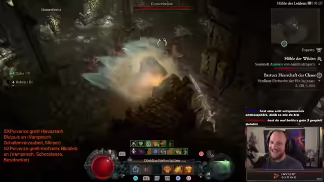 elotrix startet trotz Mandelentzündung und Medikamenten Diablo IV Season 10 als Druide. Er erkundet Chaos-Items, farmt Dungeons und optimiert seinen Build. Loot-Glück, Build-Vielfalt und Community-Interaktion sorgen für einen langen, unterhaltsamen Stream. Auch Lifestyle und Zukunftsplanung werden besprochen.