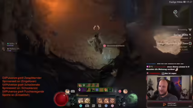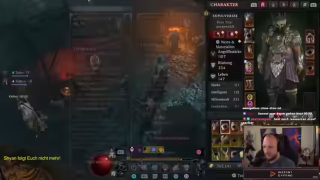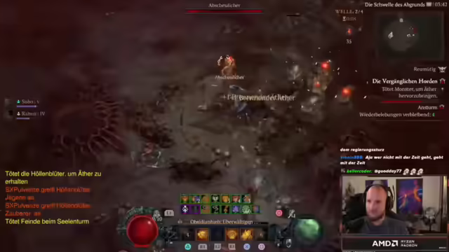 03:09:49Nachdem Elo festgestellt hat, dass die Chaos-Portale kein Zuckerschlecken sind, überlegt er, wie er seine Fähigkeiten verbessern kann. Er erwähnt, dass ihm noch eine Trophäe für das Platin in Diablo fehlt, nämlich das Töten von Multiplayer-Gegnern. Elo ist gespannt, welches Level er in dieser Season erreichen wird, da die Chaos-Items viel Schaden ermöglichen und somit höhere Dungeons machbar sind. Allerdings stirbt er das erste Mal und erkennt, dass er defensivere Aspekte benötigt, wie den Grizzly-Ult oder einen Rüstungsaspekt, da ihm die Ressourcen zum Durchspammen fehlen. Er beginnt, auf Stählung zu skillen und eine defensive Fähigkeit auszurüsten, da der aktuelle Dungeon sehr schwer ist und er ständig verlangsamt wird. Elo stellt fest, dass die Events zu wenig Loot geben und er Ressourcenprobleme hat. Er braucht dringend die Grizzly-Ult, um nicht ständig gestunt und weggedrückt zu werden.