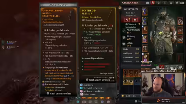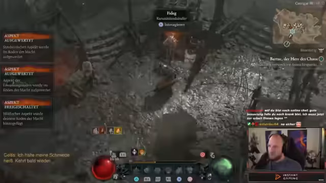 Es wurde ein spontaner Stream gestartet. Es wurde ein gesundheitlicher Zustand des Streamers gemeldet, der unter einer Mandelentzündung leidet. Trotz dieser Umstände wurde das Spiel Diablo IV mit der neuen Chaos Season 10 begonnen. Es wurde mit dem Druide-Klassen gestartet und experimentiert mit neuen Builds.