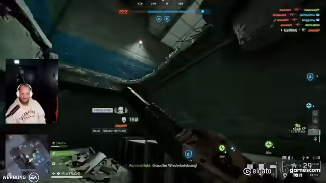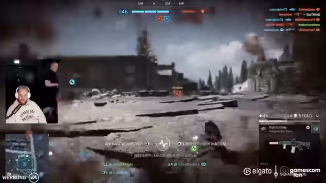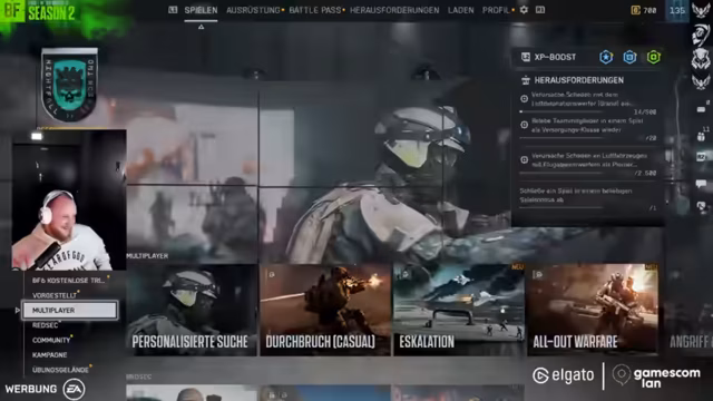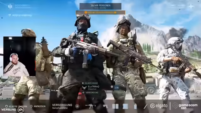 01:20:06Zu Beginn des Streams werden die Einstellungen für Battlefield 6 konfiguriert. Der Streamer muss seine Mitspieler in eine Gruppe einladen und sucht nach der passenden Lobby. Nach einigen Anlaufschwierigkeiten wegen eines defekten Headsets wird die Audioqualität angepasst. Gemeinsam mit Freunden wie Stryker und Mytho wird schließlich gestartet und der Crossplay-Modus aktiviert, um das gemeinsame Zocken auf der LAN zu ermöglichen. Es werden erste spielerische Aktionen unternommen und technische Aspekte wie die Lautstärke und die FPS-Rate eingestellt.
