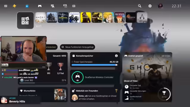 00:05:24Der Streamer teilt mit, was er vor dem Stream gegessen hat - Homemade Brot aus Kartoffeln, Filet mit Pfeffersauce und Gemüse. Danach wechseln sich technische Probleme mit dem Sound im Stream mit seinen Gameplay-Erklärungen ab. Er beschreibt detailliert sein technisches Setup bei der PlayStation und seine Freude über die außergewöhnliche Grafikleistung.