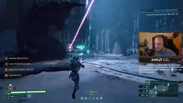 00:14:43Der Streamer ist tief in das Gameplay von Returnal eingetaucht und erklärt verschiedene Spielmechaniken wie die Adrenalin-Systeme, die Erkundung der Biome, den Umgang mit verschmutzten Items und die Entscheidung zwischen Parasiten-An und -Ausschalten. Er beschreibt auch, wie man durch bestimmte Heilmittel sein maximales Leben erhöhen kann und wie man Waffen mit besseren Aufsäulen ausstatten kann.