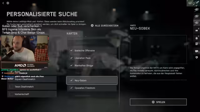 05:02:29Der Streamer äußert zunehmende Frustration über die hohe Anzahl an Snipern im Spiel und das Map-Design, das diese Spielweise begünstigt. Er beklagt, dass er ständig gesnipet wird, egal wohin er geht, und dass viele Spieler nur noch auf erhöhten Positionen campen. Besonders die 'Tal-Map' wird als schwierig empfunden, da sie bei Verteidigung oft zu einer Niederlage führt. Er schlägt vor, den Modus zu wechseln, da Rush-Verteidigung keinen Spaß macht und die Lobbys oft mit Bots aufgefüllt werden, wenn Crossplay deaktiviert ist. Die Diskussion über das Snipen und die Balance der Waffen, insbesondere im Vergleich von MGs zu MPs, zieht sich durch den Stream, wobei der Streamer das Gefühl hat, dass MGs zu einfach zu bedienen sind und zu viel Schaden verursachen.