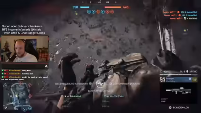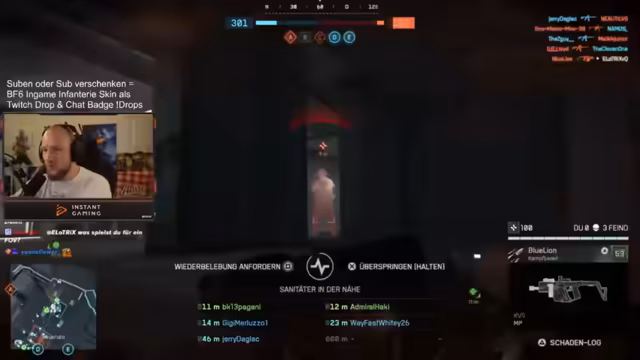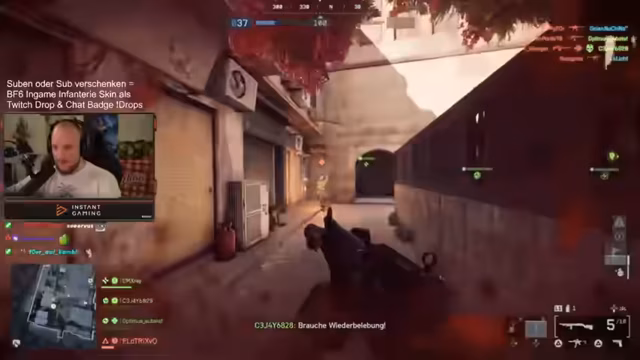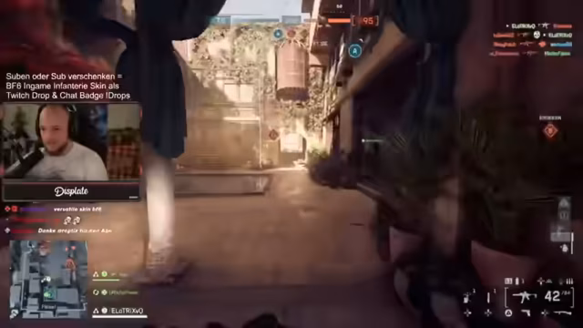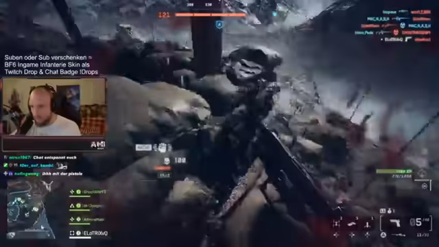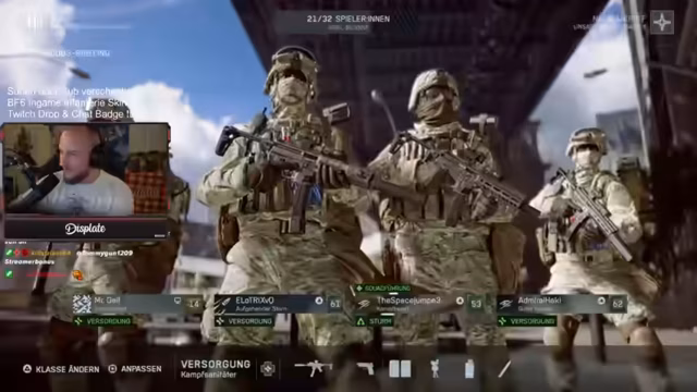 03:21:24Der Streamer betont seine Dominanz über Konsolenspieler und beschreibt die Lobbys auf Playstation als „entspannt“, da dort oft „Familienväter“ spielen, was ein anderes Spielgefühl vermittelt. Er hebt die Map hervor, die er als seine beste im Rush-Modus ansieht, aufgrund seiner Kenntnisse über Spots und Flankierwege mit der Sturmsoldaten-Klasse. Er erklärt die Vorteile seiner Klasse: Spawn-Beacon für Flanks, eine starke MP für Nahkampf und eine Schrotflinte als Zweitwaffe. Er kündigt an, dass Subscriptions und Sub-Geschenke einen In-Game-Infanterie-Skin und einen Twitch-Batch als Drops gewähren. Der Streamer genießt die täglichen Battlefield-Streams und freut sich über die Begeisterung der Community.