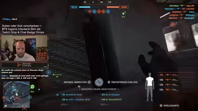02:45:28Trotz eines fehlgeschlagenen Granatenwurfs bleibt die Moral hoch. Der Streamer kommentiert die Effektivität eines schnellen Drucks auf die Gegner, insbesondere auf der aktuellen Map, wo die Gegner oft überrumpelt werden, bevor sie sich richtig positionieren können. Er feiert einen Quadra-Kill und führt seine Motivation auf die erhaltenen Subs zurück. Die Bedeutung eines guten Squads wird hervorgehoben, und es wird über zukünftige gemeinsame Spielsessions gesprochen. Während des Spiels werden Spawn-Beacons strategisch eingesetzt, um Flankenangriffe zu ermöglichen. Die Herausforderungen des Kampfes in Rush-Modus werden diskutiert, insbesondere die Schwierigkeit, gegen gut positionierte Gegner in Häusern vorzugehen und die Notwendigkeit, höhere Positionen einzunehmen.