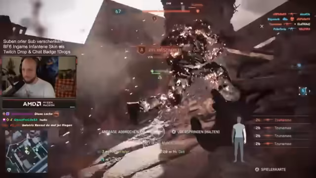 06:54:15In einer spannenden Runde gelingt dem Team des Streamers ein bemerkenswertes Comeback, nachdem sie mit einem deutlichen Rückstand von 200 Tickets gestartet waren. Dies unterstreicht die Dynamik des Spiels und die Möglichkeit, auch scheinbar aussichtslose Partien noch zu drehen. Während des Spiels wird die Frage diskutiert, wie Tickets im Eroberungsmodus verloren gehen, wobei Kills und das Einnehmen von Zielen als Hauptfaktoren genannt werden. Eine überraschende Beobachtung ist die Zerstörung einer kompletten Brücke auf der Map, was zuvor noch nie erlebt wurde. Der Streamer plant, seine Shotgun-Spielweise anzupassen, indem er weniger aus der Hüfte schießt und stattdessen mehr auf Quickscoping setzt, da die Hipfire-Mechanik der Shotgun nicht zuverlässig erscheint.