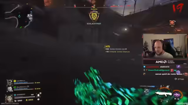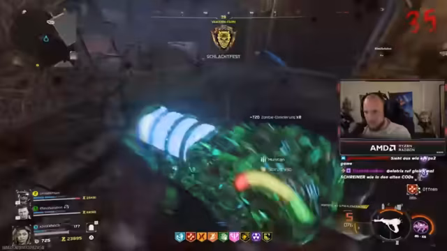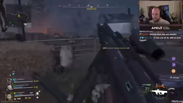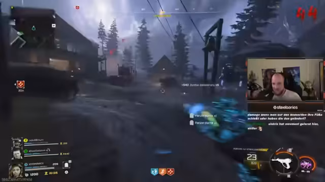04:58:25Der Streamer bedankt sich bei Monty für die Idee, gemeinsam Zombies zu spielen, und lobt ihn als „Macher“. Die Spieler kämpfen mit der Schwierigkeit des Spiels, insbesondere in engen Räumen, und müssen ständig Platten sammeln, um zu überleben. Es wird festgestellt, dass das Leveln in Zombies langsam vorangeht. Die Spieler diskutieren über Perks und Waffenupgrades, wobei die Effektivität bestimmter Waffen und der Nutzen von Perks wie dem Geist-Perk, das zufällige Elemente aktiviert, im Vordergrund stehen. Die Suche nach Platten und Munition ist ein wiederkehrendes Thema, da die Gegner immer stärker werden und die Ressourcen schnell verbraucht sind. Die Dynamik des Spiels erfordert ständige Anpassung und strategisches Vorgehen, um nicht überrannt zu werden.