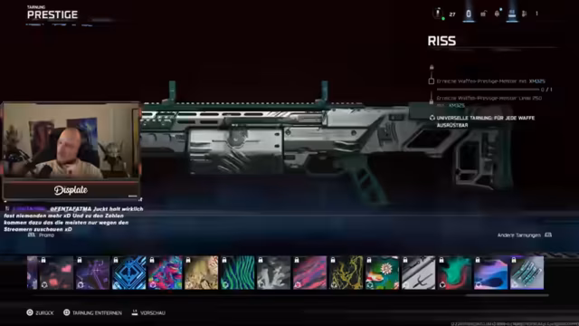 07:38:22Der Streamer widmet sich der Betrachtung von Waffenskins und Tarnungen im Spiel. Er fragt sich, ob es sich um die Dark Matter-Tarnung handelt und bewundert den 'Untergangsstrahl', der sehr gut aussieht. Er erklärt das System, wie man verschiedene Tarnungen freischaltet: Gold für eine Waffe, dann Blutstein für alle Waffen einer Kategorie, und schließlich Dark Matter, wofür man alle Waffen inklusive Messer, Werfer und Pistolen auf Gold haben muss. Er zeigt sich begeistert von den 'sexy Tarnungen' und erkennt einige davon aus Black Ops 4 wieder, wie die 'Waffenfähiges 115'-Tarnung, die er auch aus Black Ops 2 kennt. Er ist überrascht von der schieren Anzahl der Tarnungen in diesem Call of Duty-Teil und vermutet, dass es sich um KI-generierte Tarnungen handeln könnte, was die große Auswahl erklären würde. Besonders hebt er hervor, dass man sogar Waffenprestige erreichen kann, um weitere Belohnungstarnungen freizuschalten.