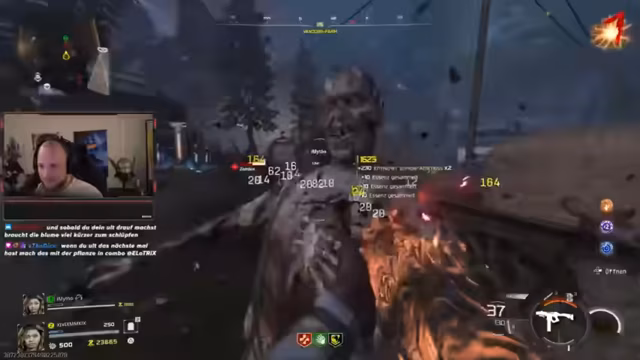 04:39:18Die Spieler äußern ihre Begeisterung für den Zombies-Modus und wünschen sich, dass er ein eigenständiges Spiel wäre, das sie auf Platin spielen könnten. Es wird festgestellt, dass viele Spieler das Hauptspiel nur wegen des Zombies-Modus kaufen. Mytho erhält seine MP auf Lila durch die Giftpflanze, was als extrem stark und effizient empfunden wird, da es viel Schrott spart. Die Spieler diskutieren die Effektivität verschiedener Aufsätze wie Napalm und Feuerwerk und sind beeindruckt von der Schnelligkeit, mit der sie ihre Waffen verbessern können. Es wird auch über alte Black Ops 3 Mechaniken gesprochen, bei denen man Kaugummis ziehen und einlösen konnte. Die Giftpflanze wird weiterhin als 'zu broken' bezeichnet, da sie scheinbar keinen Cooldown hat und immer wieder genutzt werden kann, um Ressourcen und Upgrades zu erhalten. Die Spieler sind fasziniert von der Tiefe und den Möglichkeiten, die der Zombies-Modus bietet.