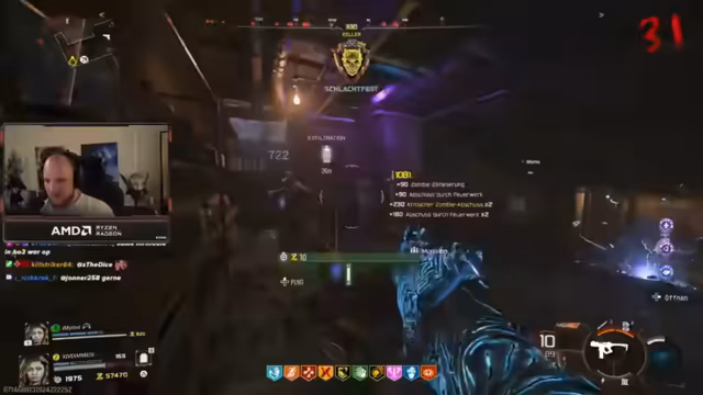 07:41:51Es wird die Frage diskutiert, ob es auf der aktuellen kleinen Karte ein Easter Egg gibt und ob man durch das Abschließen eines Easter Eggs alle Perks erhalten kann. Es stellt sich heraus, dass die gespielte Karte keine Easter Eggs besitzt, da es sich um eine kleinere Version einer größeren Zombie-Map handelt. Die Forschung von Fähigkeiten und Perks wird thematisiert, insbesondere die 'Napalmsalbe', die Elite-Feinde verbrennen kann. Die Streamer sind nach acht Stunden Zombies-Grinding immer noch aktiv und diskutieren über die Effizienz verschiedener Upgrades, wie die Verlängerung der Verbrennungsdauer oder die Übertragung von Schaden auf nahegelegene Feinde. Die Forschung von 'Deadshot D'Aquiri' wird als besonders wünschenswert hervorgehoben.