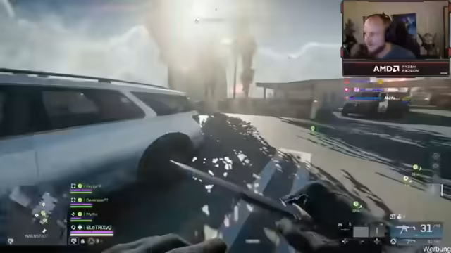 01:07:56Das Turnier beginnt mit der Landung in einer Hot-Zone, dem Golfplatz, die als gefahrenreich gilt. Ein sofortiger Kampf entbrennt, bei dem der Streamer drei Kills erzielt und mit einem Teamkollegen in einen Heli einsteigt. Der Heli explodiert jedoch wenig später, was für sein Team das vorzeitige Ende in der ersten Runde bedeutet. Die schnelle und chaotische Natur des Modus wird betont und die Notwendigkeit, zusammenzubleiben, wird angesprochen, trotz der anfänglichen Orientierungslosigkeit.