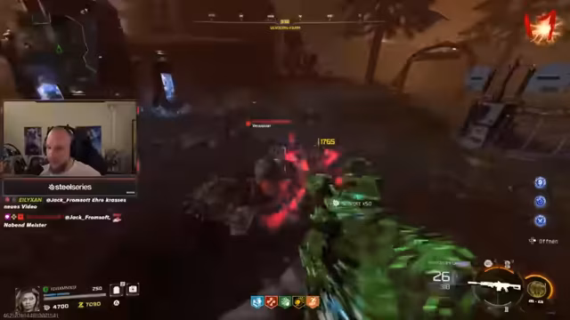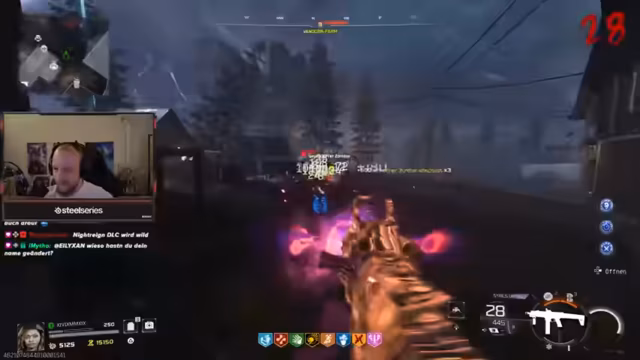 02:13:00Der Streamer widmet sich dem Zombie-Modus und erwähnt, dass er eine Pause von 15 Minuten einlegen könnte, um Kamos zu grinden. Er hat bereits 1000 Headshots erreicht und muss nun Ulti-Kills und Kills mit T2-Rüstung machen, was sich gut kombinieren lässt. Er spielt den Zombie-Modus gemütlich auf einem Zweitaccount, um zu leveln, und nutzt dabei Double XP und zweifache Kaugummis, die zwei Wochen hintereinander aktiv sind. Die Waffe macht mit dem 'Feuerwerk'-Perk und der 'Lila'-Qualität guten Schaden, und er freut sich, dass er Ressourcen sparen konnte. Er plant, die Waffe auf Gold zu bringen und weitere Herausforderungen wie Kryo-Munitionskills zu meistern. Er erwähnt auch, dass er weder die Story noch den Multiplayer des Spiels bisher gespielt hat, da er sich auf den Zombie-Modus konzentriert. Er ist auf Welle 33 und plant, bald zu extrahieren, um die zusätzliche IP mitzunehmen.