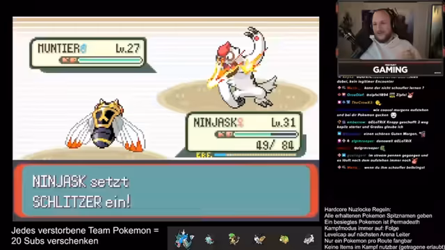 08:25:43Der Streamer definiert die von ihm selbst auferlegten Regeln der Hardcore-Nuzlocke, die kein Überleveln, keine Heil-Items im Kampf und den Permadeath von Pokémon vorsehen. Dies führt zu einem unplannmäßigen Verlust seines 'Kleinstein', der ihm das Leben kostet. Obwohl es die Nuzlocke-Regeln bricht, entscheidet er sich, ein weiteres Pokémon des Encounters zu testen, was zu einer Diskussion über die Regeln und persönliche Einsichten führt. Er verknüpft dies mit persönlichen Anekdoten über seine Kindheit und den Umgang mit Eltern, die Gaming durch gute Schulnoten ermöglichten.