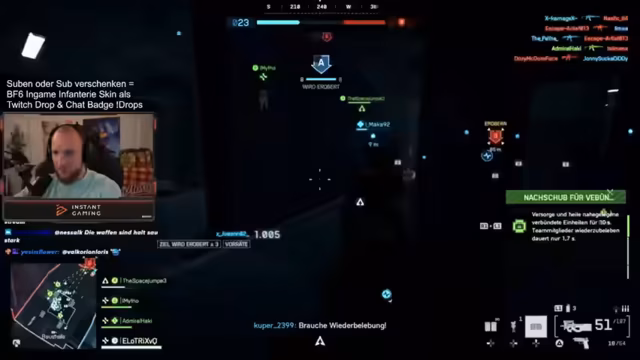 02:58:28Ein humorvolles und zugleich nachsichtiges Team-Dynamik wird sichtbar. Der Streamer bezeichnet sich selbst als 'Ehrenmann', der sich opfert, um Teammates wiederzubeleben. Doch wenn ein Teammate nach der Rettung einfach flieht, schwört er, diesen nicht mehr zu retten und notiert den Namen auf einem imaginären 'Death Note'. Diese spielerische Abmachung unterstreicht den starken Teamzusammenhalt, den er sich wünscht, und die strategische Nutzung von Spielmechaniken wie Klassenwechsel und Ausrüstung zur Anpassung an die Situation.