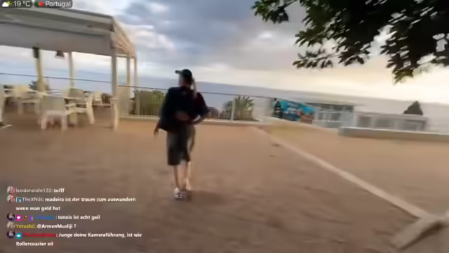 02:58:29Der Streamer erzählt, dass er sich früher oft in Parks gesetzt hat, um die Sonne zu genießen und den Menschen zuzuschauen. Er betont, dass er kein Boomer ist, der Falschparker aufschreibt. Er findet den Park klein, aber schön. Es gibt eine Tenniswelt, und er erzählt, dass er früher Tennis gespielt hat, da sein Vater Sportlehrer ist. Er würde empfehlen, im Dezember nach Madeira zu gehen, wegen des Weihnachtsmarktes. Er findet es nicht so toll, dass es viele Streuner gibt, wenn er mit seinem Hund unterwegs ist. Er wartet immer noch auf ein Angebot für eine Nashi-Bomb, wenn er beim Sport mitmacht. Er zeigt, wie groß das Schwimmbad ist, das jetzt leer ist. Er mag die salzige Luft. Er fragt Paul, warum er nicht im Rucksack mitgenommen wurde. Er lobt die gute, reine Luft auf Madeira, da der Dreck ins Meer fällt und es immer eine schöne Brise gibt. Die Luft steht hier selten und es ist selten richtig eklig schwül. Der Streamer verbrennt gerade und ist kein guter Kameramann. Er filmt den Boden, um die Leute nicht zu filmen, die so geguckt haben. Der Sonnenuntergang knallt in sein Gesicht.