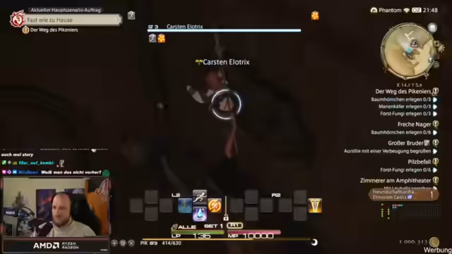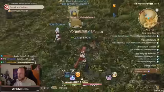 01:51:08Der Streamer kündigt eine Kooperation mit Final Fantasy XIV an und erklärt, dass er zu einem Fan Fest nach Los Angeles fliegen wird. Obwohl er mit dem MMORPG wenig Erfahrung hat, zeigt er sich begeistert und bereit, sich in das Spiel einzuarbeiten. Nach anfänglichen technischen Schwierigkeiten beim Login und Charaktererstellt, startet er gemeinsam mit einem 'Ehrenbruder' ins Spiel. Er betont die Beliebtheit des Games und gibt den Zuschauern die Möglichkeit, das Spiel kostenlos bis Level 70 zu testen.