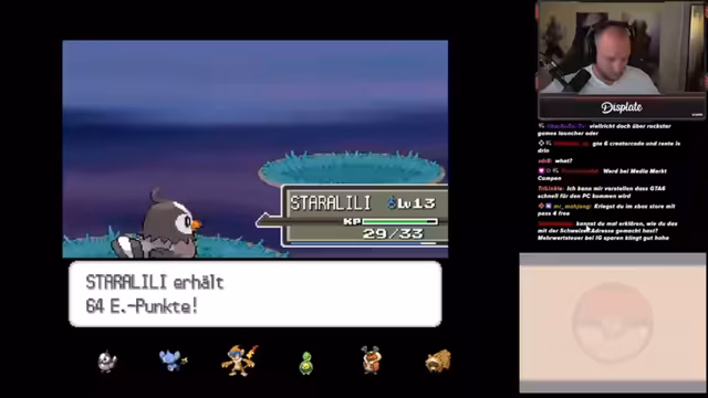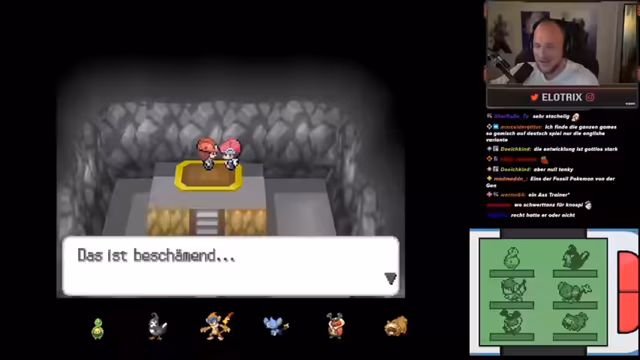 04:00:54Der Streamer beginnt die Pokémon-Platin-Edition und erkundet die Generation 4. Er lobt die Verbesserungen wie die Anzeige der Pokémon-Wesen und die Musik. Nach dem Erhalt des Starters Panflam untersucht er dessen Wesen und Attacken. Die Entscheidung für den Feuerstarter Panflam fällt, da es ein starkes Typ-Kombination aus Feuer und Kampf ist. Der Streamer plant, das Spiel normal durchzuspielen, um die Pokémon und die Spielmechaniken kennenzulernen, bevor er eine Nuzlocke-Challenge in Betracht zieht.