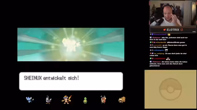 06:40:27Im Fokus stehen die Spielmechaniken des aktuell gespielten Pokémon-Teils. Der Streamer diskutiert die Entwicklung seines Knospi, das sich nur bei Tageslicht und nach einem Level-Up entwickeln kann. Er erkundet die Arenaleiter, die in dieser Edition deutlich stärker und interaktiver sind als in früheren Teilen, teilweise mit bis zu vier Pokémon. Außerdem geht er auf den im Spiel integrierten Hürdenmodus ein, der einen neuen Spielstand mit erhöhter Schwierigkeit erfordert, und überlegt, diesen für einen zukünftigen Nuzlocke-Run zu nutzen.