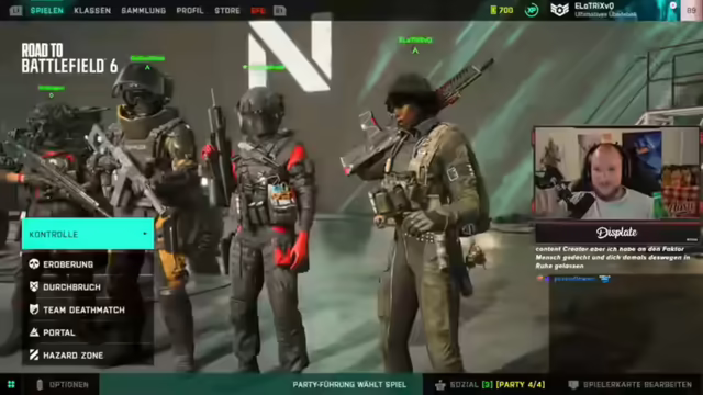 00:03:33Es wird überlegt, am Donnerstagabend mit Zuschauern Hazard Zone Wins in Battlefield 2042 zu erspielen, da die Trophäen noch fehlen. Es wird diskutiert, wer am Donnerstagabend Zeit hat, um mitzuspielen. Es wird erwähnt, dass Battlefield 2042 wahrscheinlich 'dead' sein wird, sobald Battlefield 6 erscheint, was das Erspielen der Trophäen erschwert. Ein Zuschauer empfiehlt den Anime 'Solo-Leveling', besonders für Gamer. Es wird kurz über die Grafik von Story-Games auf Konsolen gesprochen und die Bevorzugung, diese dort auf Platin zu spielen. Es wird erwähnt, dass es schwierig ist, acht Leute für die Hazard Zone zusammenzubekommen. Es wird kurz auf die Frage eines Zuschauers eingegangen, ob die 'Mafia-Wohnung' noch vorhanden ist, was bejaht wird. Es wird überlegt, eine Gruppe zu organisieren, um die Battlefield 2042 Trophäen zu machen, aber es wird auch das Fehlen von Battlefield 5 im eigenen Repertoire erwähnt.