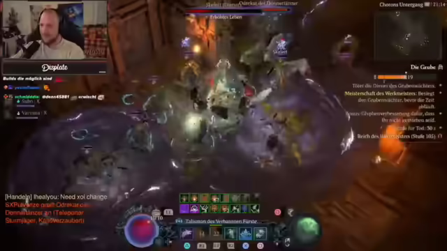 00:17:35Es wird der aktuelle Diablo 4 Build erklärt, der auf Speed und Damage basiert. Kataklysmus wird als Ulti genutzt, die 40% mehr Damage und keine Geisteskraftkosten verursacht. Durch das Season-Thema wird immer gecrittet, und ein Helm sorgt für zwei zusätzliche legendäre Passiven. Es wird demonstriert, wie die Raben extrem stark, schnell und groß werden. Es wird ein 105er-Portal in etwa zweieinhalb Minuten abgeschlossen. Es wird ein fast perfektes Amulett gefunden, aber leider mit dem falschen Greater Affix. Es wird die Frage aufgeworfen, ob die Droprate für Chaos-Items erhöht werden sollte. Es wird erklärt, dass man die Chaos-Items nicht genau in dem Slot finden muss, wo der Guide das schreibt, sondern selber rumwechseln kann. Es wird der Unterschied zwischen Chaos und Mythic Items erklärt. Es wird erwähnt, dass es für den aktuellen Speedfarm-Build noch Verbesserungspotenzial gibt.