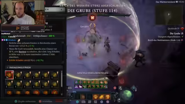 06:04:01Der Streamer fasst die Loot-Ergebnisse des Streams zusammen und zeigt verschiedene gefundene Mythics. Er gibt sein Ziel für die Season bekannt: mit verschiedenen Druiden-Builds hohe Pit-Gruben zu pushen und dabei Spaß zu haben. Gleichzeitig kündigt er an, den Diablo-Grind zugunsten des neuen Battlefield zu reduzieren. Er zeigt sich hocherfreut über die bevorstehende Veröffentlichung und plant, das Spiel mit der Community zu spielen, und sieht die Streaming-Zeiten trotz ungewöhnlicher Uhrzeiten als gelungen und ehrenlos an.