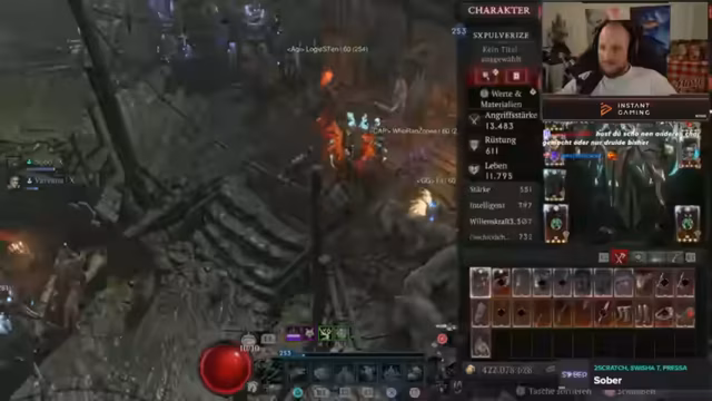 05:33:09Der Streamer zeigt sich begeistert von einer zufällig gefundenen Hose im Spiel Diablo 4, die einen starken "Grader Affix" auf Glückstreffer-Chance besitzt. Dieses Item, kombiniert mit einem Build, der auf Raben-Schaden setzt, führt zu einem enormen Schadensoutput und motiviert ihn, weiter nach speziellen Items zu farmen. Er zeigt, wie effizient dieser Build durch schnelle Wiederherstellung der Fähigkeiten funktioniert.