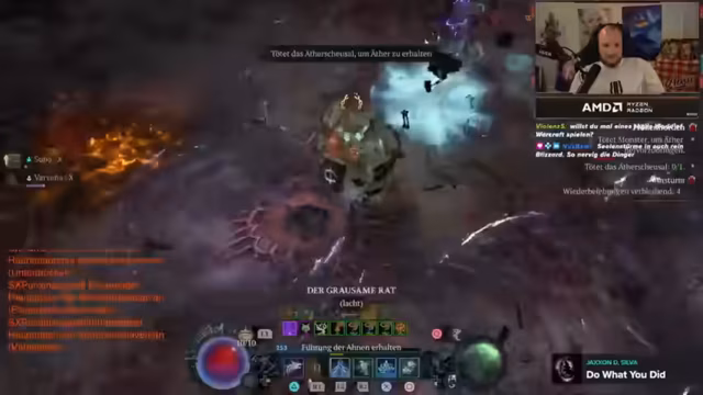 02:30:44Der Streamer ist von Diablo 4 begeistert und hebt die Season 10 mit den Chaos-Unix-Items als besonders gelungen hervor. Er erklärt einen Build-Fehler, den er bei seinem Raben-Druide gemacht hat, da er den Aspekt für Zyklonenrüstung nicht skillt, was aber automatisch durch das Season-Thema ausgelöst wird und ihn stärkt. Er ist von der Geschwindigkeit und dem Damage seines Builds begeistert und beschreibt ihn als "unfassbar spaßig". Er ist mit den aktuellen Loot-Ergebnissen, inklusive Double Mythic Drops, sehr zufrieden.
