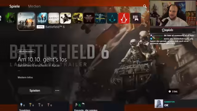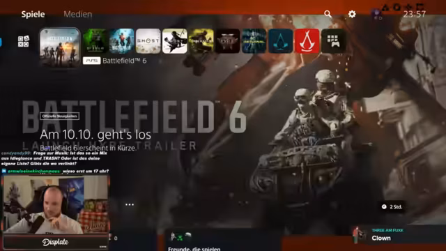 00:05:51Es werden jüngste Gaming-Erfolge geteilt, darunter die Erhaltung der Platina in Battlefield und Diablo, wobei speziell fehlende PvP-Kills in Diablo als Hürde genannt werden. Der Streamer kündigt an, Battlefield ab 17 Uhr streamen zu dürfen, und plant, vor dem offiziellen Start des Streams privates Gameplay zu betreiben, da er einen Presse-Key besitzt, der eine sofortige Veröffentlichung verbietet.