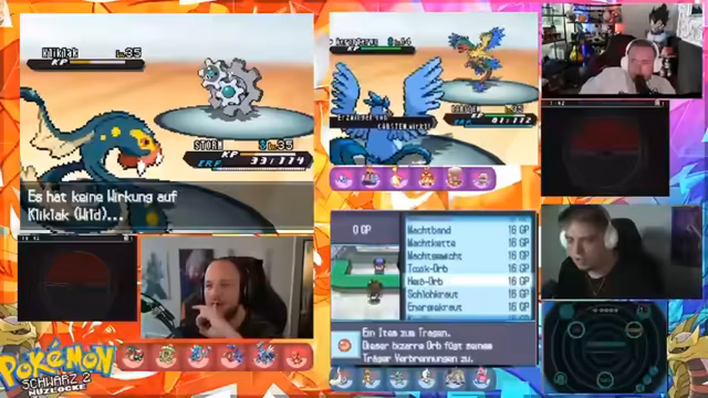08:45:39Der Streamer findet einen neuen Encounter im Gras und freut sich über Austoss. Er tauscht es mit Blizzard aus und hofft, dass es Eishagel erlernen kann. Es wird überlegt, ob ein Wasserstein benötigt wird. Der Streamer spricht die NPCs an, um Kämpfe zu starten. Er verliert sein Ampharos durch Spiegelcape, was ihn sehr ärgert, da es sein einziges Elektro-Pokémon war. Der Streamer überlegt, wie gut Magneton jetzt wäre. Er findet einen King und bedauert, dass er keinen besseren Encounter hatte. Der Streamer stellt fest, dass sein Porygon nicht sehr tanky ist und fragt den Chat, ob er auf dem richtigen Weg zum Kaufhaus ist. Er besiegt einen Boss vom Team Plasma und erhält ein Item für seinen Starter.