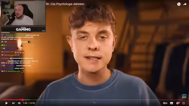 01:00:51Während der Einleitung der Reactions kommt es zu einem technischen Problem, bei dem Zuschauer doppelten Sound hören. Der Streamer, Tim, ist sich des Problems zunächst nicht bewusst, da er es nur in seinen Kopfhörern und nicht im Streamton wahrnimmt. Nach kurzer Fehlersuche identifiziert er das Problem in der Elgato Wavelink-Software, bei der eine Einstellung falsch war und den Ton fälschlicherweise sowohl für ihn als auch für die Zuschauer ausgeben ließ.