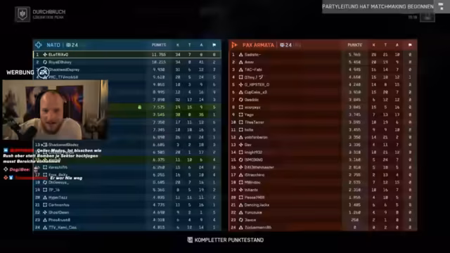 06:43:02Der Frust über das mangelnde Teamplay im Spiel steigt massiv an. Alle Spieler sterben permanent an der "Front" und fühlen sich im Stich gelassen. Es herrscht ein Jeder-für-sich-Denken anstatt kooperatives Vorgehen, was die Runden als unerträglich und sinnlos empfunden werden. Der Chat und die Streamer beklagen, dass niemand kommuniziert oder helft.