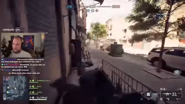 02:48:17Der Streamer analysiert die aktuelle Map intensiv und äußert seine Vorliebe für die Infanterie-Kämpfe und die Zerstörungsumgebung. Er diskutiert mit seinem Mitspieler Micha die Vor- und Nachteile der Klassen, insbesondere die Übermacht des Versorgers und die Schwäche des Snipers. Gleichzeitig tauscht er sich mit dem Chat aus, gibt Hinweise zur Beta und reagiert auf Kommentare zur Helligkeit des Spiels.