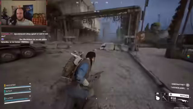 01:29:46Nach der anfänglichen Hektik konzentriert sich der Stream auf das Erkunden der Umgebung und das Sammeln von Ressourcen. Ein 'Barrikadenset' wird als besonders nützlich identifiziert, da es sich schnell aufstellen und wieder abbauen lässt, um sich vor Feinden zu schützen. Das Spiel erfordert strategisches Handeln, etwa das Nutzen von Aufzügen und das Meiden gefährlicher Gegner wie der 'Springer' oder 'Opa Langenbein'. Das Inventarmanagement wird zu einem zentralen Problem, wenn die Spieler sich überladen fühlen und Loot zurücklassen müssen, um sich von einem Helikopter abholen zu lassen.