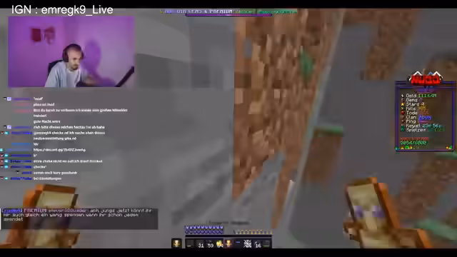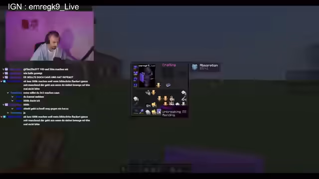 00:00:01Der Stream beginnt mit technischen Schwierigkeiten und der Vorbereitung auf ein K-Fight Event. Der Streamer diskutiert mit Zuschauern über das Spiel, insbesondere über Eisabbau mit Silk Touch versus Pickaxe. Es gibt technische Probleme mit der Verbindung, und einige Teilnehmer fallen aus, was die Teilnehmerzahl von 3 gegen 3 auf 2 gegen 2 reduziert. Der Streamer organisiert Equipment für den Kampf, darunter Leather, Pickaxe und Totems, während er auch über Account-Probleme spricht, da sein Antrag für die Media-Anzeige abgelehnt wurde.