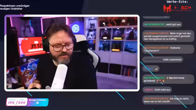 00:23:30Der Streamer präsentiert Produkte von Holzkern, für die er Werbung macht. Er zeigt ein Armband und eine Uhr, die in einer ansprechenden Holzbox geliefert werden. Das Armband, das aus Holz gefertigt ist, gefällt ihm sehr gut, benötigt aber noch zusätzliche Steine, um perfekt zu passen. Die Uhr wird als sehr elegant und schlicht beschrieben und ist ebenfalls aus Holz gefertigt. Beide Produkte werden als qualitativ hochwertig und leicht empfunden. Es wird darauf hingewiesen, dass bis morgen ein Rabatt von 30% auf die Produkte erhältlich ist. Die Produkte werden in Zukunft öfter am Streamer zu sehen sein.