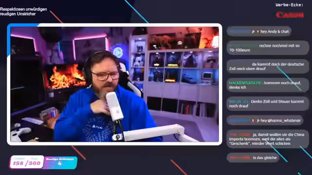 00:47:31Im Stream wird eine Collector's Edition eines Spiels ausgepackt, die mit einer aufwendigen Verpackung und hochwertigen Inhalten wie einem Artbook, einem Pergament, einem Brief mit Siegel und einem Samtsäckchen mit Kupfermünzen beeindruckt. Da das Spiel bereits gekauft wurde, wird die Gold Edition an einen Freund weitergegeben. Besonders hervorgehoben wird ein 3D-Modell eines Amphitheaters, das aus 160 Teilen besteht und dessen Zusammenbau etwa drei Stunden dauern soll. Anschließend wird über den Kauf von professionellem Kamerazubehör aus den USA diskutiert. Es handelt sich um spezielle Tethering-Kabel und Metallkabelführungen, die rund 430 US-Dollar kosten würden. Die Notwendigkeit dieser Investition wird durch wiederholte Beschädigungen von Kabeln in der Vergangenheit begründet. Es wird auch über die potenziellen Zollgebühren und Einfuhrumsatzsteuern gesprochen, die bei einer Bestellung aus den USA anfallen würden. Die Unsicherheit bezüglich der genauen Kosten und des Abwicklungsprozesses beim Zoll wird thematisiert, da die Informationen auf der Zollseite als unklar und verwirrend empfunden werden.