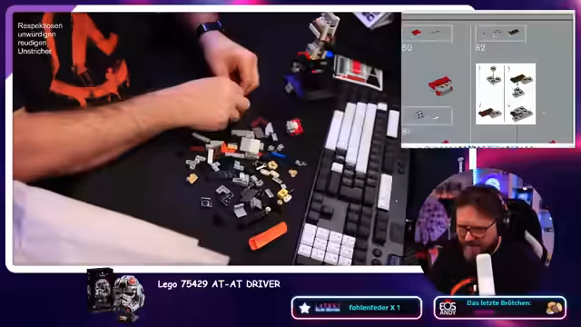 02:26:18Nach den diversen Themenabschnitten und technischen Unterbrechungen geht es zurück zum Hauptinhalt, dem Lego-Helm-Bau. Die Motivation des Streamers scheint gefallen zu sein, denn nach mehreren Stunden Bauraum stößt er wieder auf logistische Probleme. Die Seiten des Helms verlangen nach Präzision, und er bittet die Zuschauer um Geduld. Der Stream endet damit, dass er versucht, die letzte große Seite des Helms zu formen und das Bauprojekt zu einem Abschluss zu bringen, wobei es noch offen bleibt, ob der heute fertiggestellt wird.